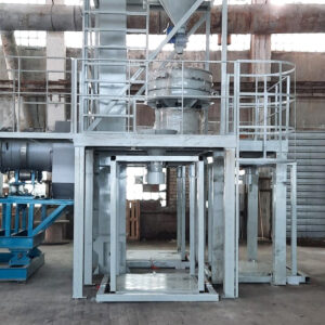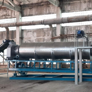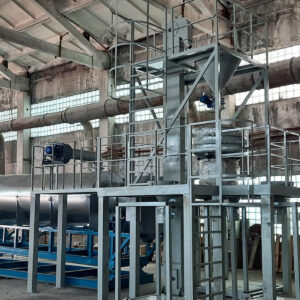 Линия состоит из печи газовой с блоком измельчения материала, вибросита, бункеров с ворошителями и датчиками уровня, питателей, конвейеров, транспортера, нории, растаривателя, затаривателя и металлоконструкций участков линии.